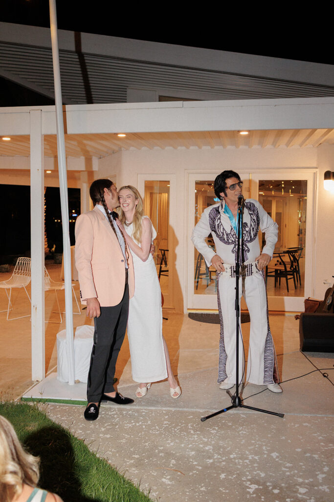 Many group photos and candids later, Jack told me it was time for the big surprise. Elvis was in the building!! The King himself came to officiate a (very) quick vow exchange for ceremony, and the crowd went wild. Elvis even performed a song leading to an unofficial first dance for Jackie and Jack with the guests gradually joining in.