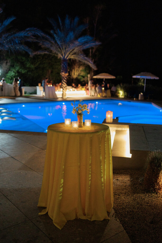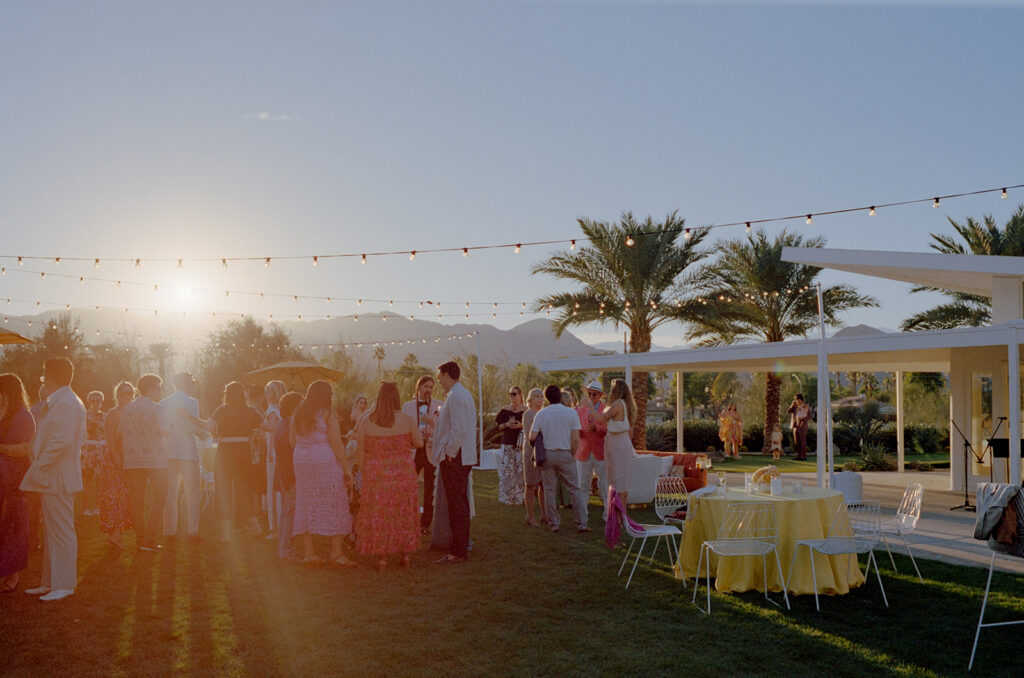 Jackie and Jack hosted a Slim Aarons-inspired wedding celebration for their Desert White House wedding in Palm Springs. Oozing with vintage fashion silhouettes, colorful patterns, and those sweet desert breezes, this wedding avoided tradition and created instead the perfect slow-paced poolside cocktail party for everyone to mingle and relax.